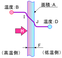 温度Bの高温気体と、温度Dの低温気体が、壁で仕切られている時の熱通過量です。