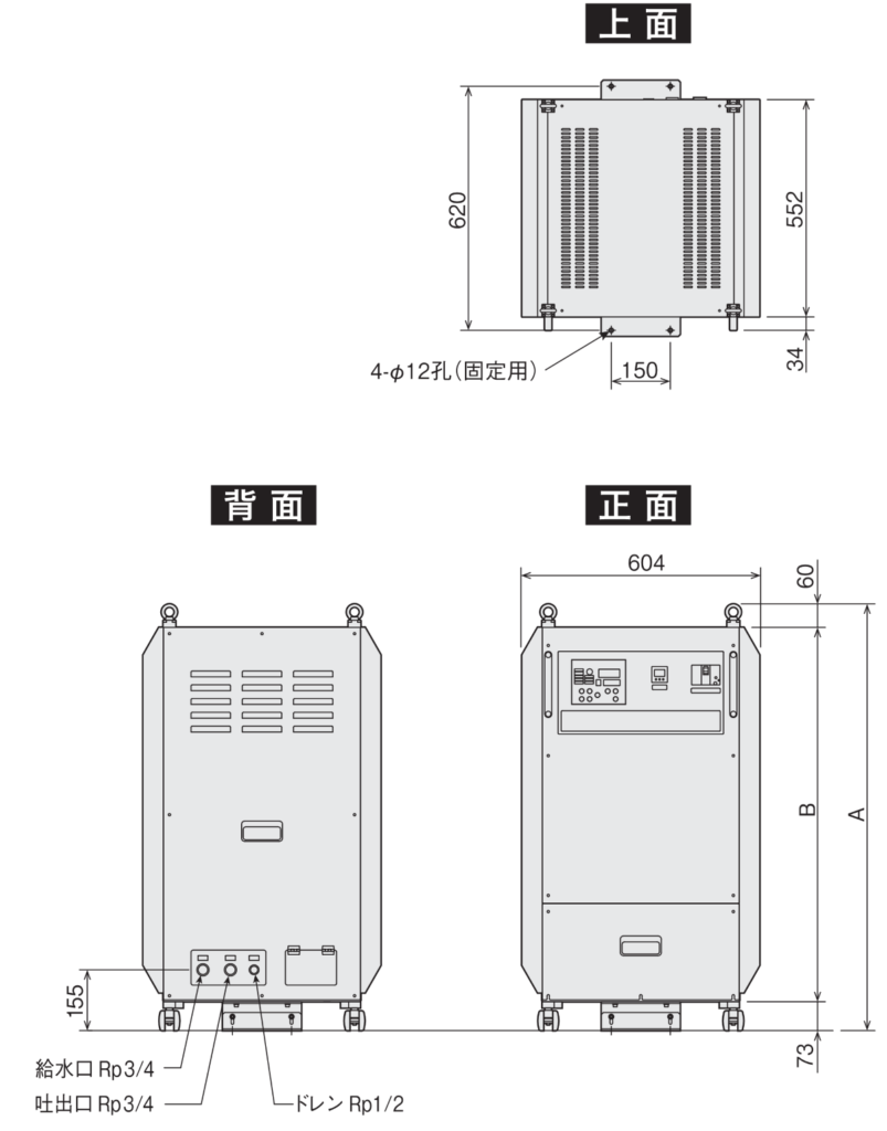 - 本製品は工場ラインなどにおける水加熱ユニットです。公共の水道には直接接続しないでください。