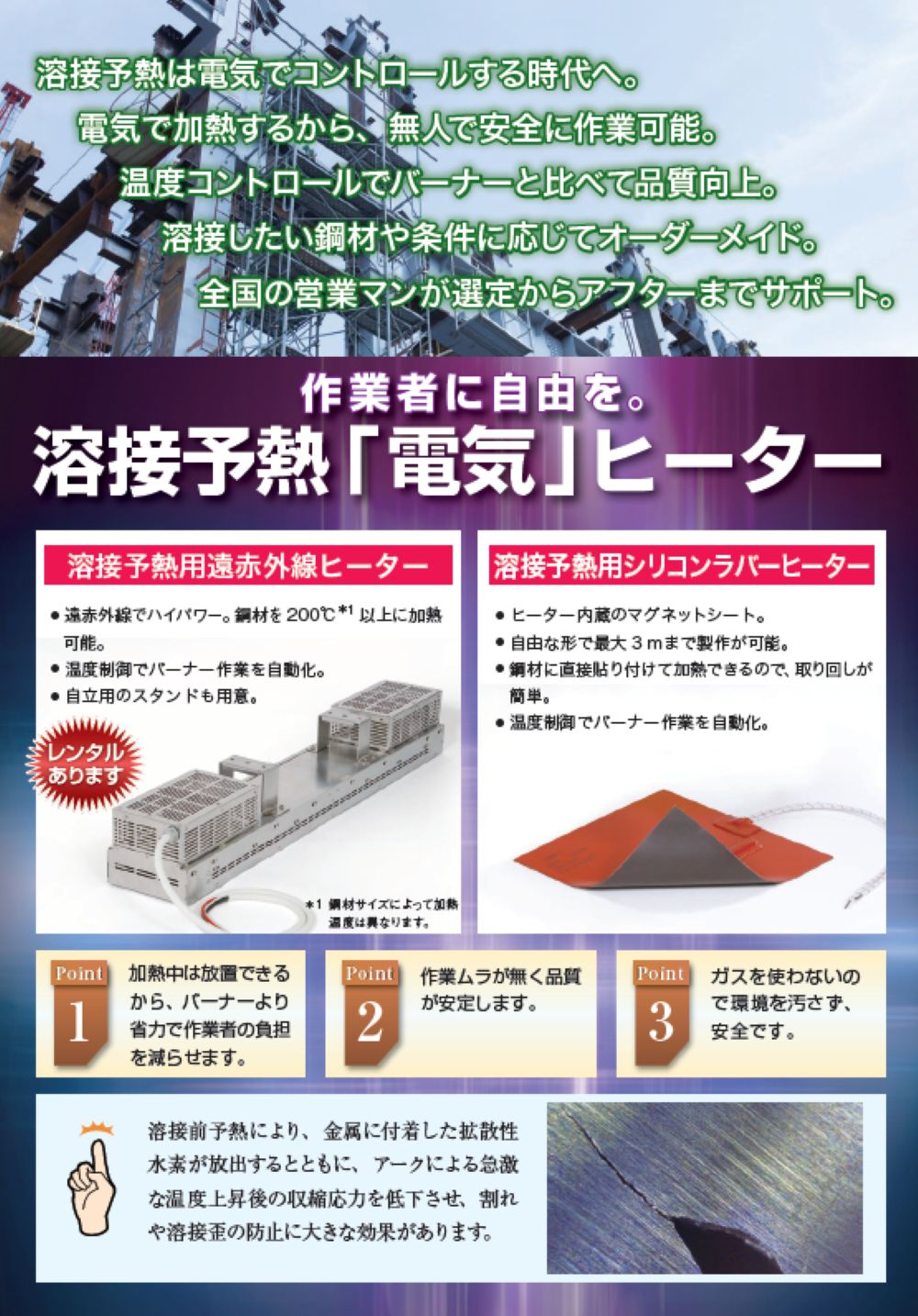 溶接前予熱および後熱に使用し、残留応力を低下。