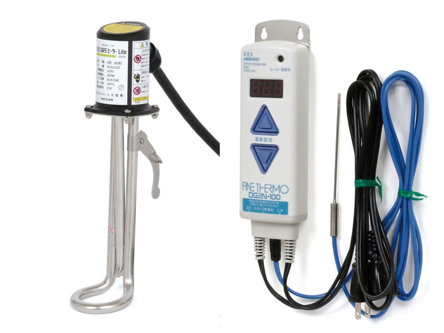 安全機能付きステンレス投込みヒーターと、デジタル表示温度コントローラーのセット